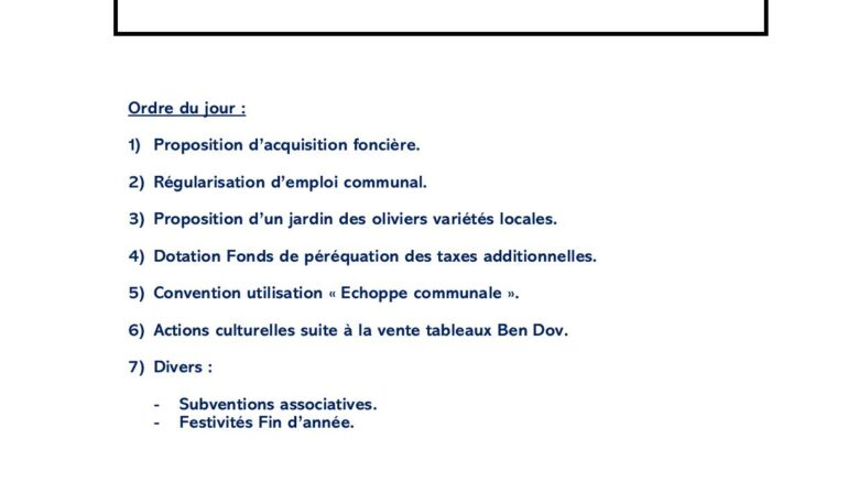 Conseil Municipal jeudi 4 Décembre à 18h Posted on1 décembre 20251 décembre 2025 Auteur span>Secrétaire Mairie